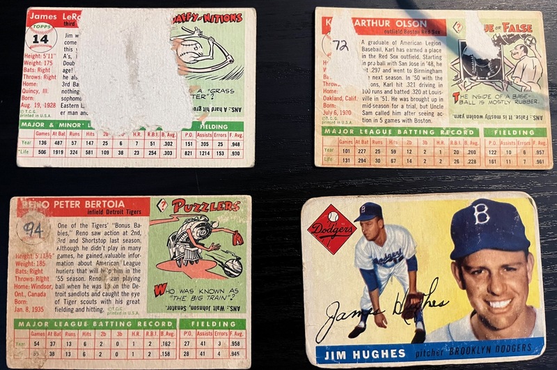 I am participating in the OBC project to collect the Worlds WORST looking sets - I have selected my birth year 1955 to participate in this project. I am seeking cards with significant creasing, surface wear, corner erosion, tack holes, dents, etc. I would like to try and have at least 90% of the card, but no beater will be turned away! My favorite beaters have rounded, fuzzy corners, surface wear and creasing. I am also accepting cards with writing and wonderful artwork hopefully embellished by some kid 65 years ago. I will ALWAYS be looking to DOWNGRADE, so if you have a card that is a Tipton 10, send him my way. No 1955 TOPPS WILL BE TURNED AWAY!