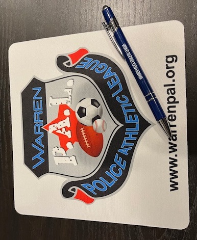 Lot 160 - Warren Police Athletic League SWAG - Desk Set, with Mouse Pad, Notebook and Pen - donated by P.A.L. - Min bid $10